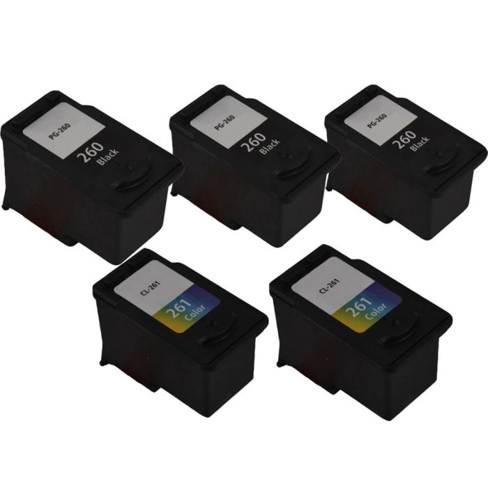 Replacement Canon Ink Cartridges 260 and 261 Combo Pack of 5: 3 PG-260 Black & 2 CL-261 Tri-color