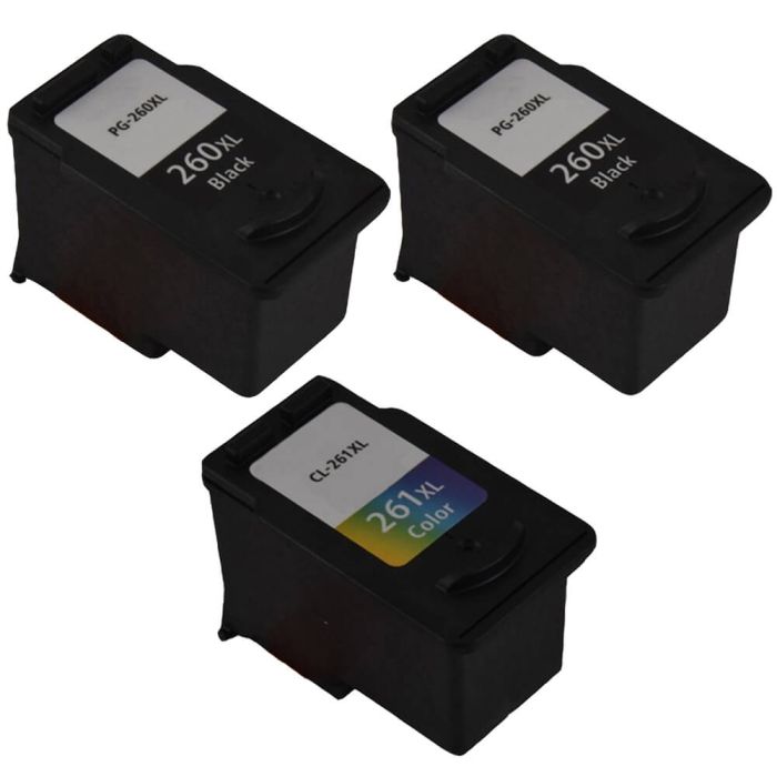 Replacement Canon 260 261 XL Ink Cartridges Combo Pack of 3 - High Yield: 2 PG-260XL Black & 1 CL-261XL Tri-color