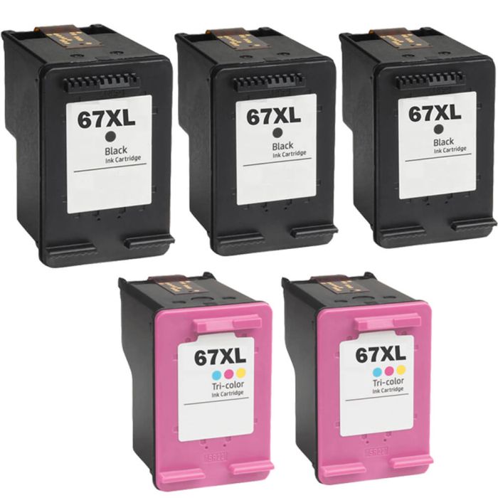 Replacement HP Ink 67 XL Cartridges Combo Pack of 5 - High Yield: 3 Black & 2 Tri-color